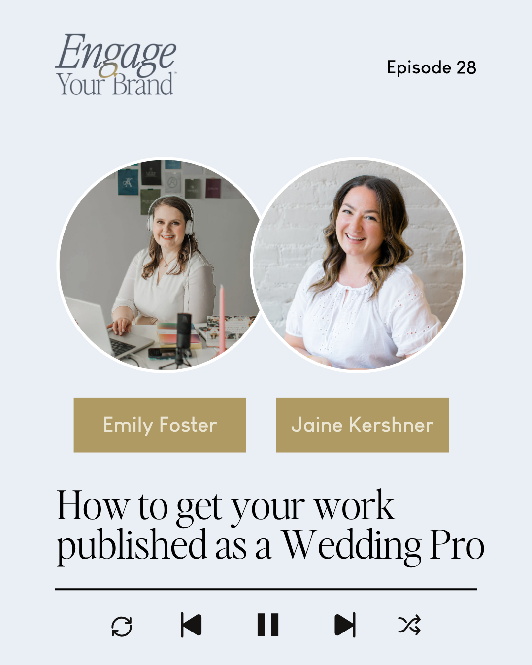 I’m so delighted to share that I was recently a guest on Emily Foster’s podcast, Engage Your Brand and today our episode is available now. I chat with Emily all about how to get your work published as a wedding professional. You can click here to listen to our chat on all available podcast platforms.